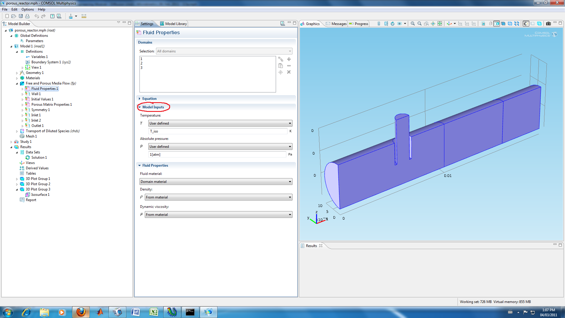 have a look attached files. Eventhough I have added heat transfer module there is no option in flow to add T to couple flow and heat..which is the case in the model from model library defined by comsol..I have attached model documentaions as well in which there is a straightforward instruction to add temp in flow under model inputs..