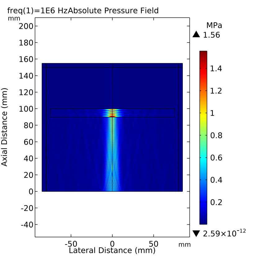 I am using the frequency domain pressure acoustics module & defining my transducer as a flat line with normal displacement (piston transducer). I defined the water & high impedance material mediums in the pressure acoustics module with a user defined attenuation. From my understanding, the pressure acoustics module should have the ability to compare acoustic impedance of the high impedance material and water material domains and define reflection / transmission coefficients based on the acoustic impedance mismatch, but this doesnt seem to be working.