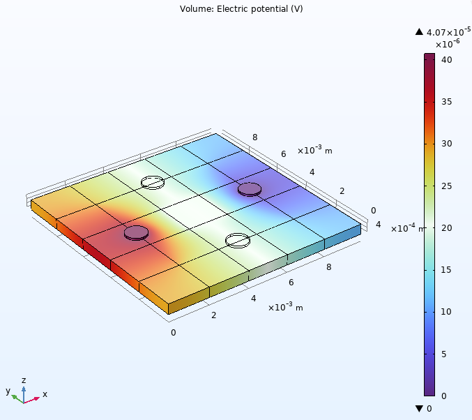 I have been creating a simulation that emulates the Hall Effect in a 1cm x 1cm x 1mm piece of graphite (essentially trying my best to create graphene). I am doing this project to measure the electric potential (plus current distribution) and Hall resistance of graphene.
