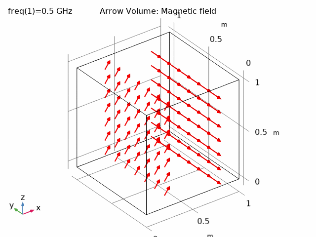 Thanks for your response and examples, I mean how to represent this rotation of field strength through a still picture as I am doing academic writing. Animation cannot be included in the paper. So I'm trying to find an expression in the arrow volume to visualize the rotation of the magnetic field. But I tried all the existing expressions provided by comsol and found no arrow that can represent the rotation of the magnetic field.