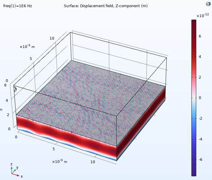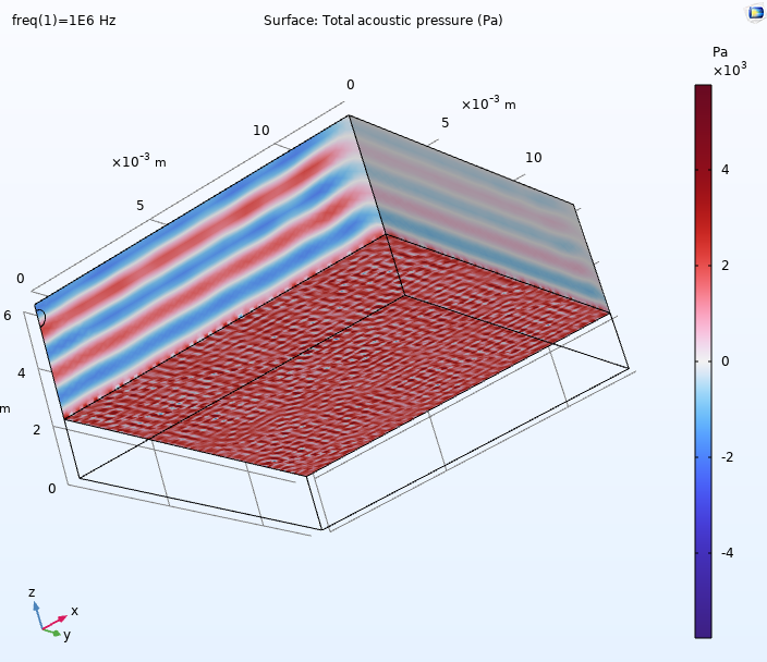 I am currently performing an acoustic-piezoelectric coupled frequency analysis. In the image, the lower area is the piezoelectric region, and the upper area is the acoustic medium. For the boundary conditions of the piezoelectric element, I applied a surrounding roller boundary condition, with Electric Potential boundary conditions of 0V and 0.1V at the top and bottom, respectively. In the analysis results, the voltage was applied correctly, but the z-displacement and acoustic pressure at the coupled boundary showed uneven results. This issue did not occur when I used the same boundary conditions in COMSOL version 3.5. What could be the reason for this?