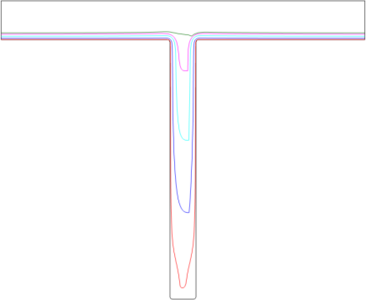 本文利用Comsol Multiphysics多物理场仿真软件,电镀模块,三次电流分布-变形几何等多物理场耦合,系统研究在含氯离子的三种添加剂体系(Cl⁻-Sup;Cl⁻-Sup-Acc;Cl⁻-Sup-Acc-Lev)中,通过模拟各添加剂组分在TSV铜电沉积过程中的作用机理可能性及其导致的填充模式演变。 通过数值模拟,对比分析了三种添加剂体系下的TSV填充机制。表格中的几种添加剂作用机理模型仿真结果显示在深宽比为10:1(100um:10um )TSV中部分模型中的镀层能实现bottom-up生长趋势,并针对性地提出了基于分步电流控制的Bottom-up填充优化方案。此外,还探究了不同因素对填充生长趋势的影响,例如:添加剂表面作用机理、交换电流密度修正作用机理、via的几何尺寸、添加剂浓度、速度场等。