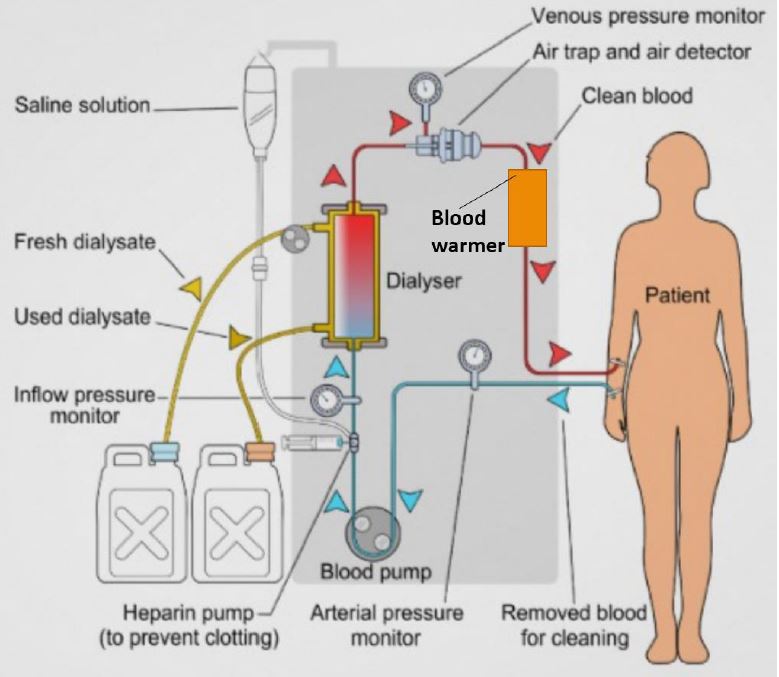 Design of Blood warmer medical device Rajesh Kapuganti1, Sivakumar A2, HCL Technologies, Chennai Email: rajesh-kapuganti@hcl.com1 sivakumara@hcl.com2 Abstract Multiphysics simulations were performed for designing the blood warmer accessory of a dialysis machine. As part of the design and development of the blood warmer the multiphysics simulations were performed to study the functional performance. The entire design and development path of this project was from the product requirement specifications to the finished product prototype. Though the complete product design and development involves multiple engineering teams, only the multiphysics simulations driven product design is the focus of this study. The study was done for a Medical devices OEM which designs, develops and manufactures dialysis machines. Dialysis is a process in which the impure blood is cleaned and infused inside the body. There is an issue called hypothermia which occurs if the blood is infused at a temperature lower than 37.6 °C inside the human body. Blood warmer is an accessory device in the dialysis machine which has to be precisely controlled in order to avoid this fatal condition of hypothermia. The Blood warmer assembly consists of the heater plates, the heater coils, the blood flow path and the control system. The multiphysics simulations involve coupling of Electrical, thermal and fluid physics. Multiphysics Simulations played a central role in design and selection of electrical heaters, design of enclosure and blood flow path. giving inputs to control systems team. In the initial base design, the heating coil was placed over the entire heater plate. The fluid flow path was optimized by designing a customized heating coil over the flow path. The interpretation of spatial thermal distribution results revealed that hot spots were created at the bends. At the bends, low velocity regions are created because of which higher heat energy is absorbed. The temperature values across the depth and breadth were plotted from the thermal distribution plots, which was used for precisely locating the heat sensor. The power vs Flow rates graph was used to plug in the control system algorithms. This blood warmer is energy efficient compared to other existing blood warmers, with less than 400W for 450 ml/min flow rate. The blood warmer with the highest precision of within ± 0.5 °C will be launched soon.