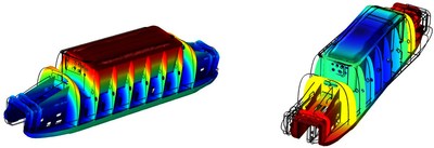 The dynamic study is divided into two main models. In the first model the interaction between the pod and the rail will be modelled with the Multibody Dynamics and Lumped Mechanical System interfaces within COMSOL Multiphysics®. The eigenmodes of the pod will be inspected in order to understand qualitatively its dynamics without constraining the space parameters (k,Cd). This approach allows us to individuate the Pareto Front surface in the optimization problem for the (k,Cd) parameters and at the same time estimate the magnitude of variables such as displacement, rotation angle, pitch and roll during the run. The second model consists in simulating a fluid damper which composes the suspension system with a Computational Fluid Dynamics (CFD) simulation of the fluid damper. A further optimization process is needed in order to size the damper (through the diameter Dh on the piston through which the viscous fluid will pass) and the viscosity of the fluid (choosing the μ of the oil), considering the flow to be incompressible and Laminar. Hence, the Laminar Flow interface, coupled with the Heat Transfer in Solids and Fluids interface have been used. For each Cd the optimization will take into account two objectives; the maximization of the linear behavior of the viscous system and the maximization of its viscous drag component against its pressure one.