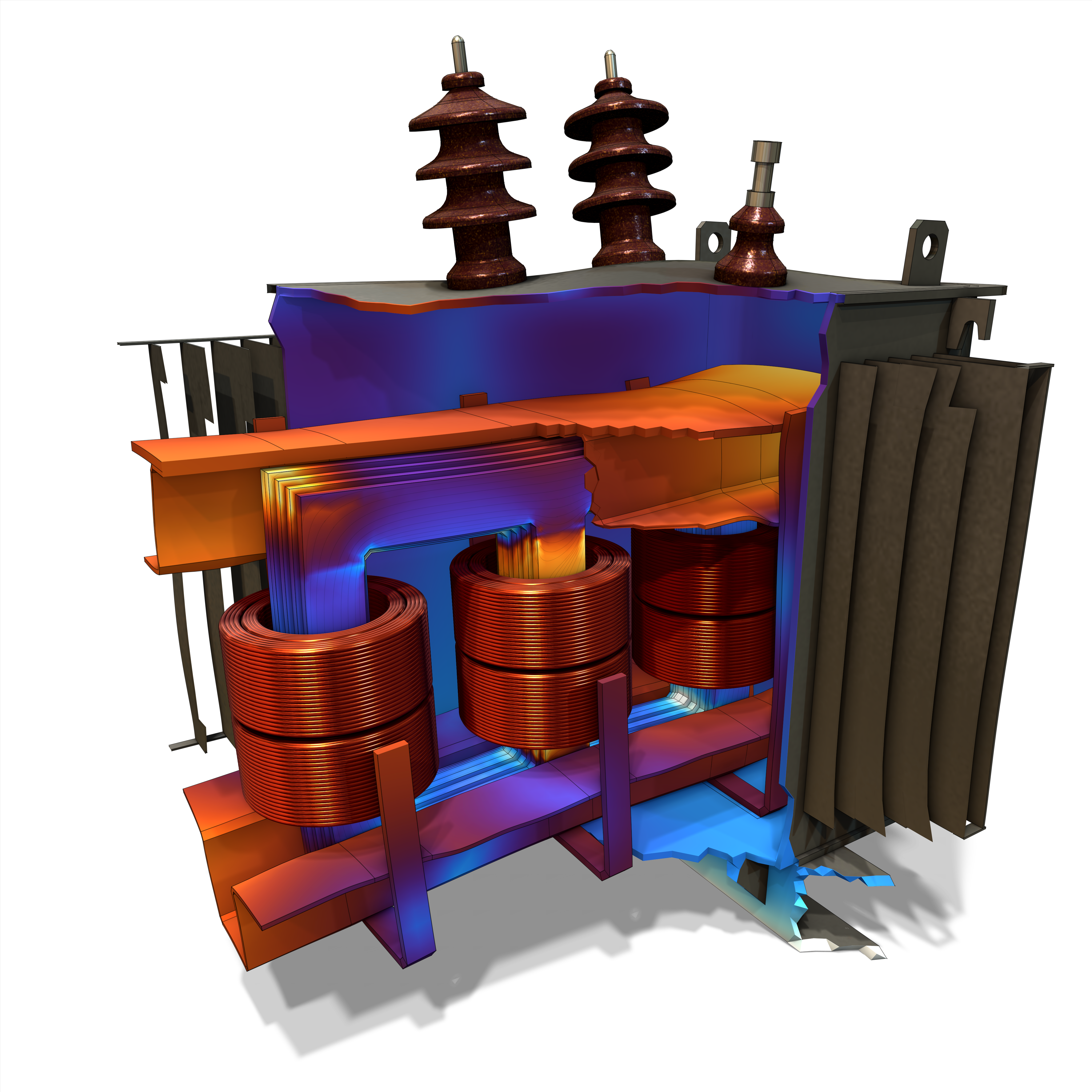 Magnetostriction of a Power TransformerVibrations in a transformer model, partially caused by magnetostrictive forces in the magnetic core.