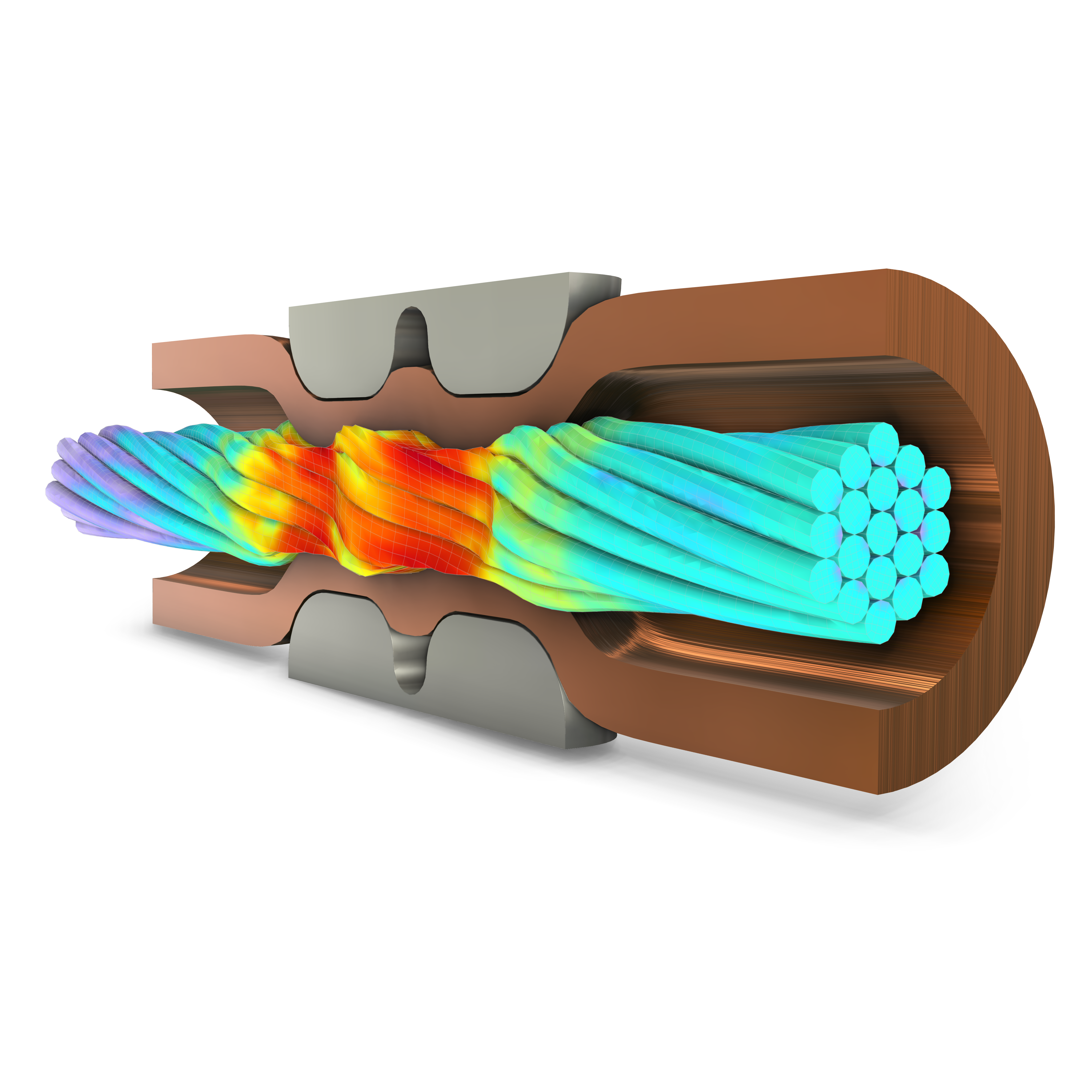 Crimping of a CableEffective stress in a cable after crimping with a terminal sleeve.