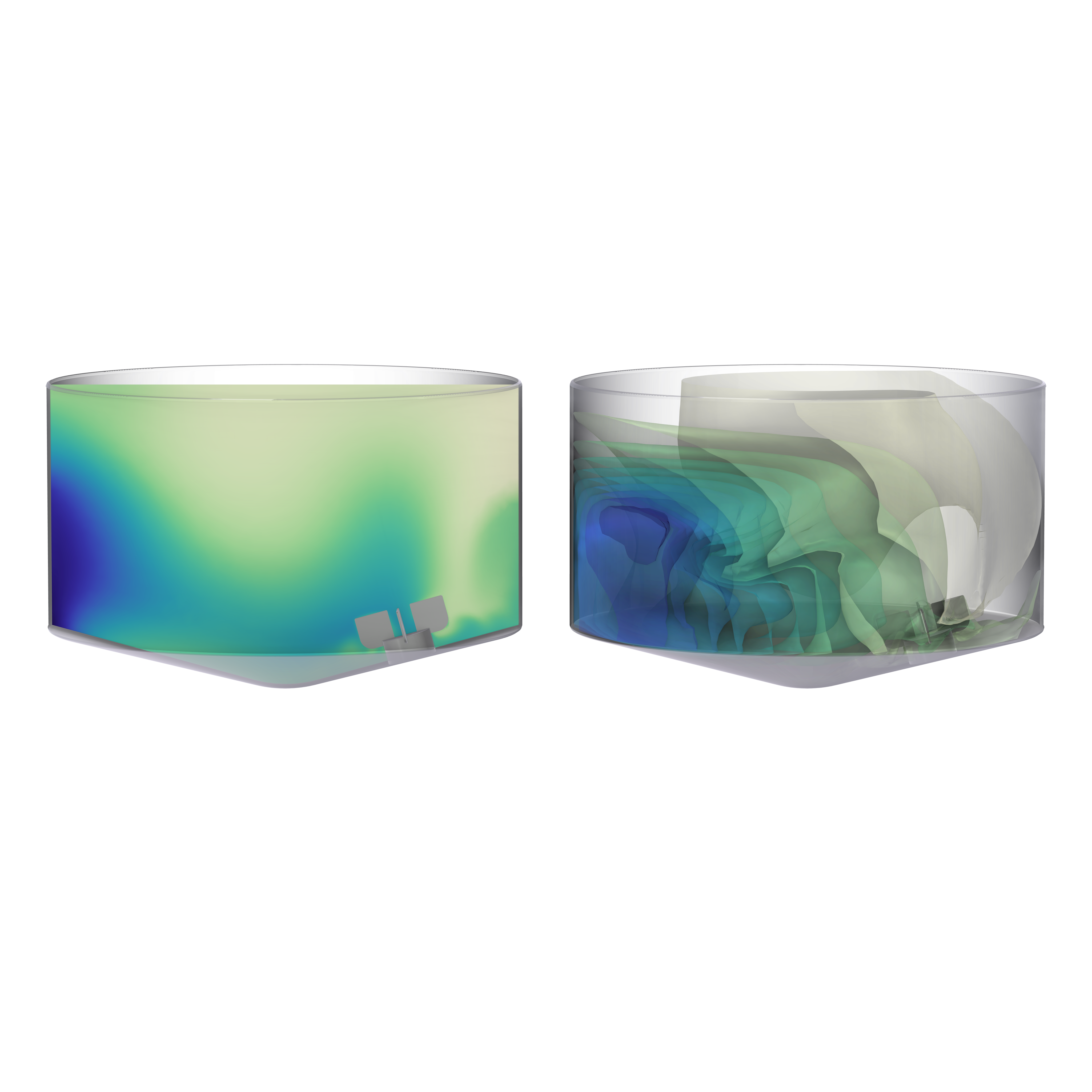 Antibody-Drug Conjugates in a Stirred Tank ReactorThe concentration of a conjugated antibody after four seconds in a tank bioreactor with a four-blade stirrer.