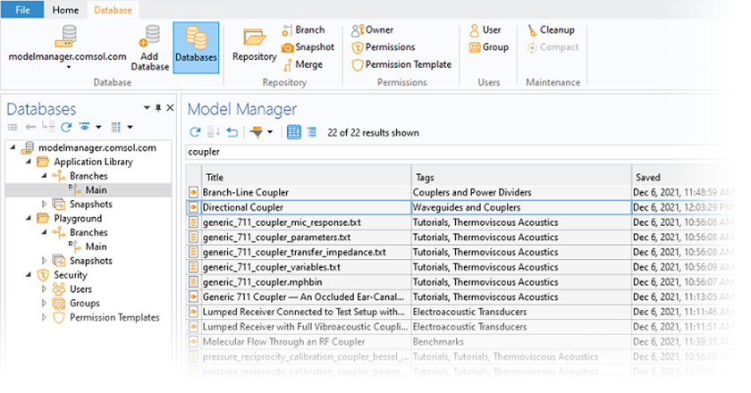 Model ManagerThe Model Manager in COMSOL Multiphysics provides version control and common storage for efficient collaboration in projects. |