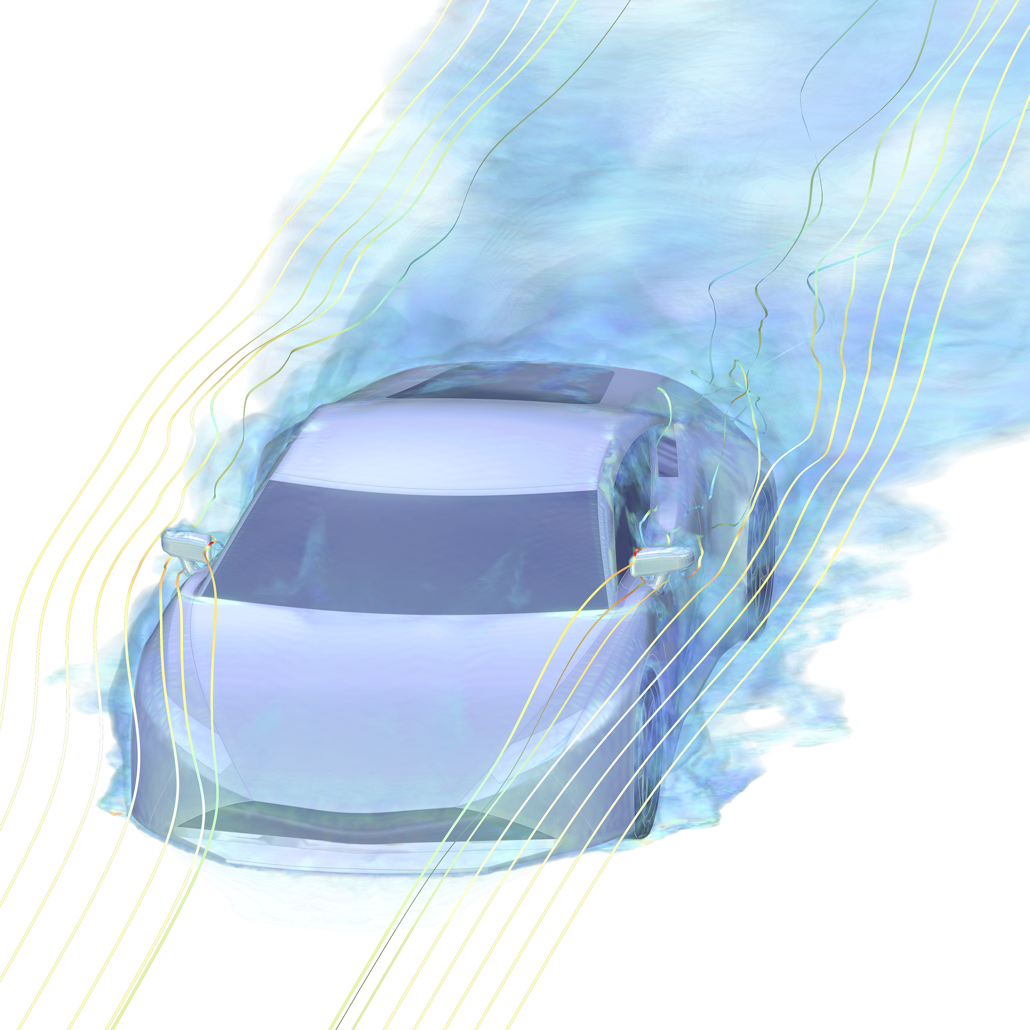Sports CarSimulation of the wind load on a sports car’s side door and mirror using the fluid–structure interaction capabilities of COMSOL Multiphysics®.