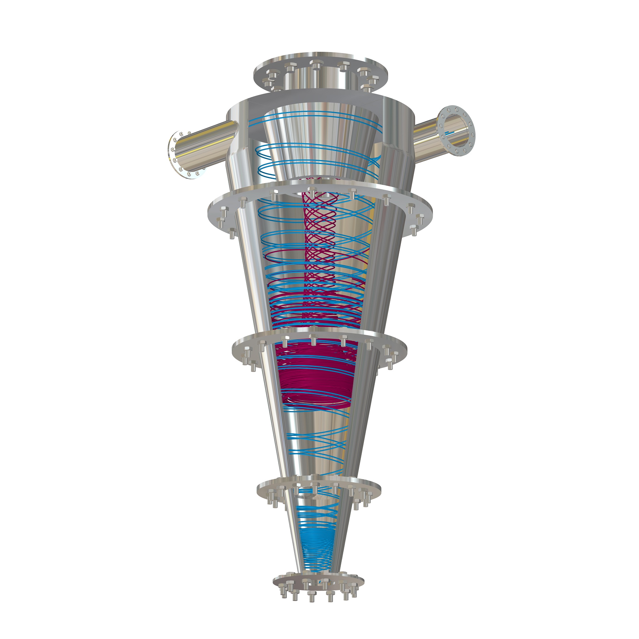 HydrocycloneFluid dynamics simulation of a hydrocyclone characterized by a very strong swirl and anisotropic turbulence. Cyclones are used in a variety of applications, ranging from the mining industry to vacuum cleaners.
