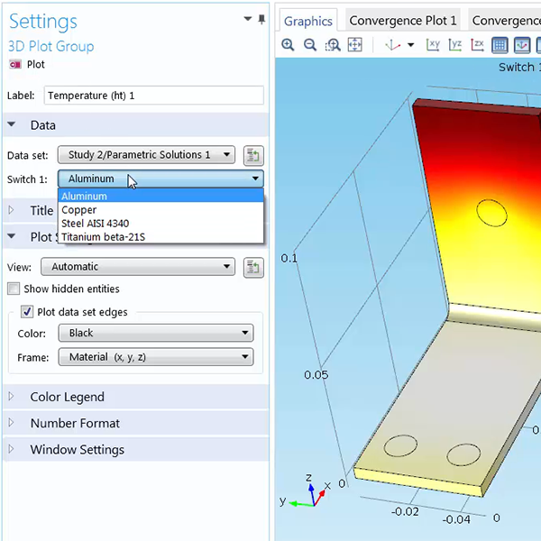 複数のコンポーネントに同じ材料を使用 Duration: 6:28 複数の製品を製造する会社の場合, それらの製品は同じ材料の一部で構成されている可能性があります. これはつまり, シミュレーションソフトウェアを使用する際は, 多くの場合, 複数のモデルコンポーネントに同じ材料を作成する必要があるということです. COMSOL Multiphysics®ソフトウェアを使用すると, グローバル材料と呼ばれる1つの材料をモデルに追加し, 特定のコンポーネントで材料リンク機能を使用して参照できます. これは, 複数のコンポーネントを含むモデルがある場合に役立ちます. 個々のコンポーネントの材料をすばやく指定できるためです. グローバル材料はモデル全体で使用でき, ローカル材料がソフトウェアに追加されるのと同じ方法で追加されます. さらに, あらゆるレベルのジオメトリにグローバル材料を適用できます. COMSOL Multiphysics® のモデルで材料リンク機能を使用してグローバル材料を使用する方法については, このビデオをご覧ください.